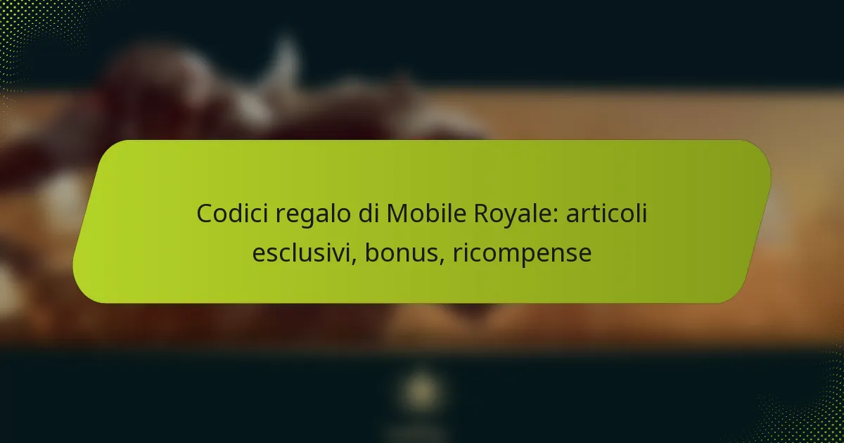 I codici regalo in Mobile Royale forniscono ai giocatori accesso a una varietà di oggetti esclusivi, migliorando il gameplay e la personalizzazione. Questi codici possono sbloccare skin uniche, sbloccaggi di personaggi, valuta di gioco, oggetti per eventi speciali e promozioni a tempo limitato, arricchendo significativamente l’esperienza di gioco.